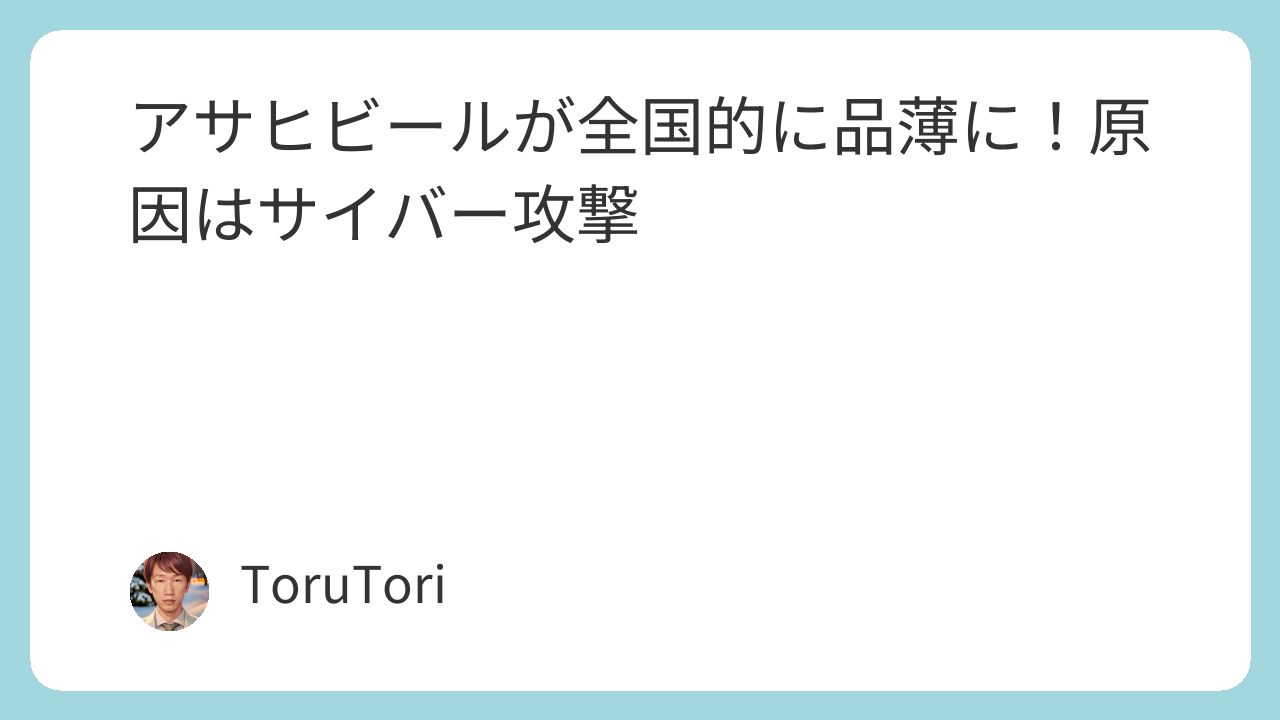 2025年9月30日(月)、アサヒグループの国内システムがサイバー攻撃を受けたことで、注文や配送のシステムがダウン。その結果、多くの工場が操業停止し、ビールやお茶などの出荷ができなくなりました。