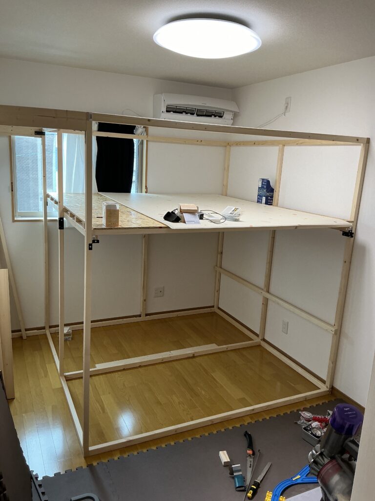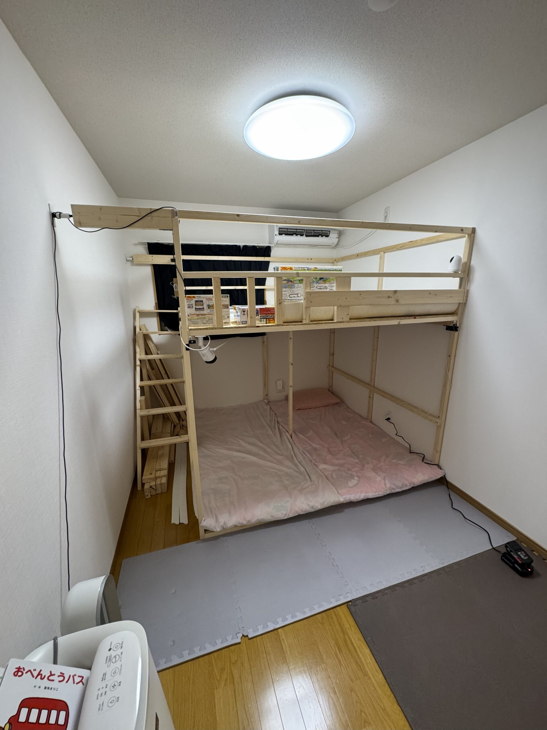 狭い家でも工夫次第で遊び場は広がります。DIY初心者の方でも比較的簡単にできる構造なので、ぜひ参考にしてみてください!