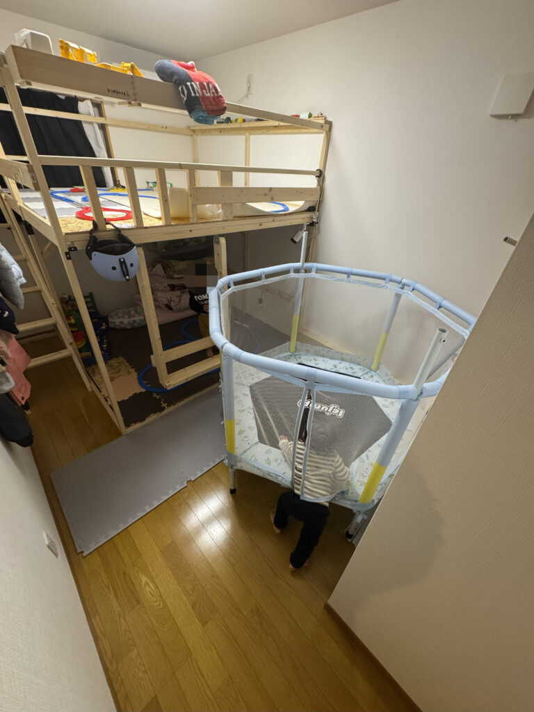 加えてトランポリンも投入し、激狭スペースになったことから、トランポリンは実家へ移動しました。