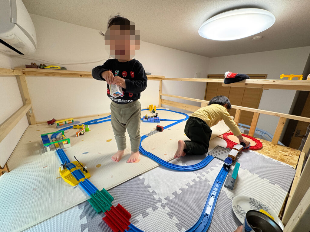このDIY子供部屋を作って一番良かったのは、長男と次男の喧嘩が減ったこと!上と下で役割分担が自然に生まれ、それぞれの「居場所」ができたのか、毎日とても仲良く遊んでいます。