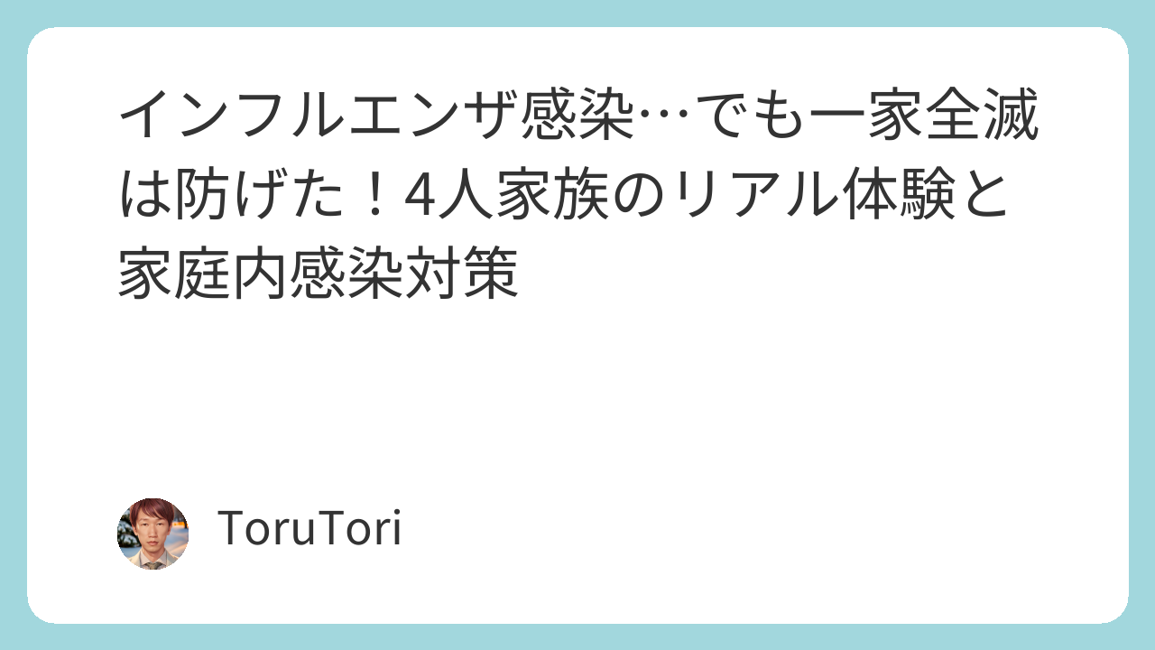 2026年1月、我が家にインフルエンザAがやってきました。最初に発症したのは妻。医療職のため接触機会が多く、ある意味覚悟はしていましたが、問題は「家庭内感染をどう防ぐか」でした。
