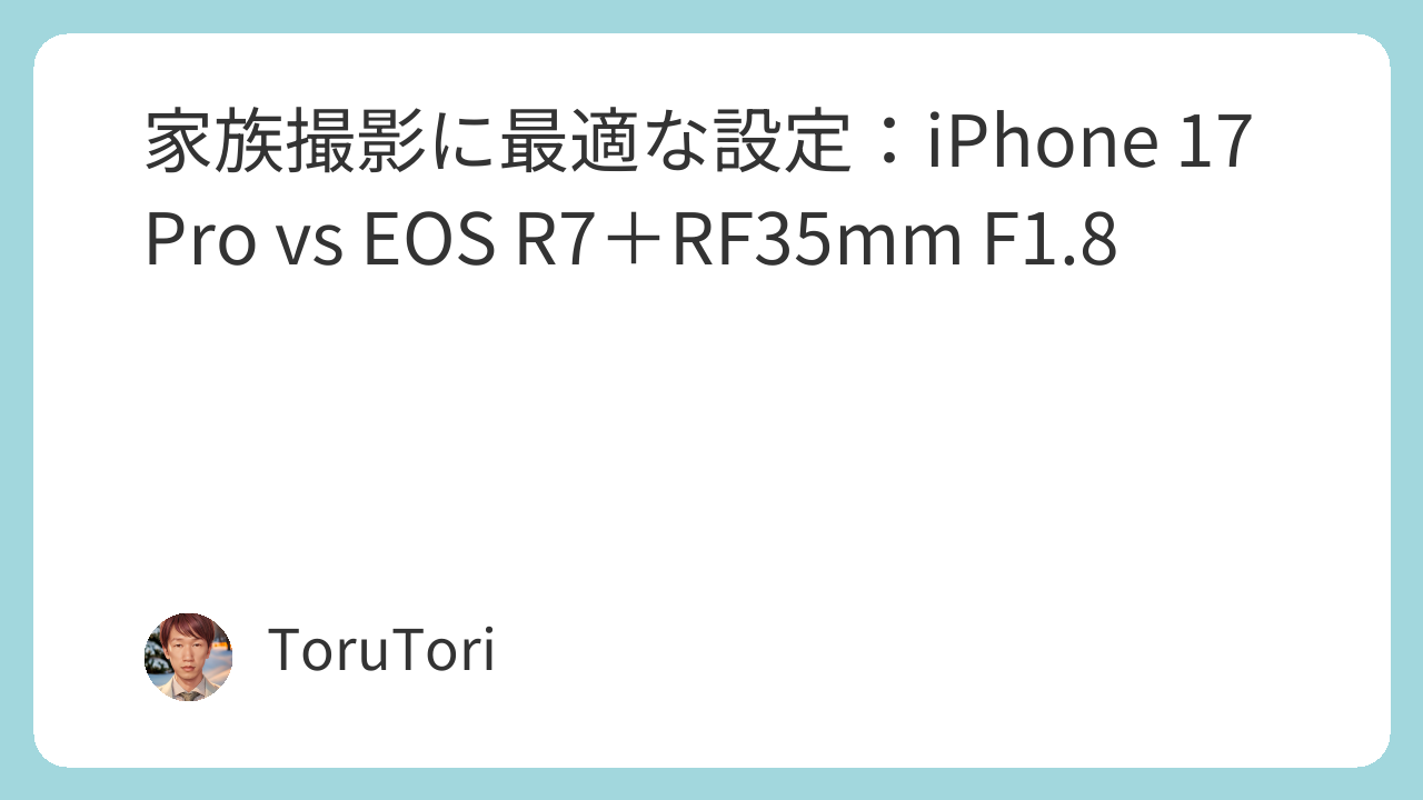 家族撮影に最適な設定:iPhone 17 Pro vs EOS R7+RF35mm F1.8