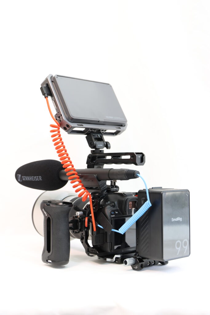 外部モニター、Vマウント電源、ショットガンマイクを搭載することで、撮影の安定性・音質・視認性が劇的に向上し、YouTube・インタビュー・イベント収録まで対応可能なセットになりました。
