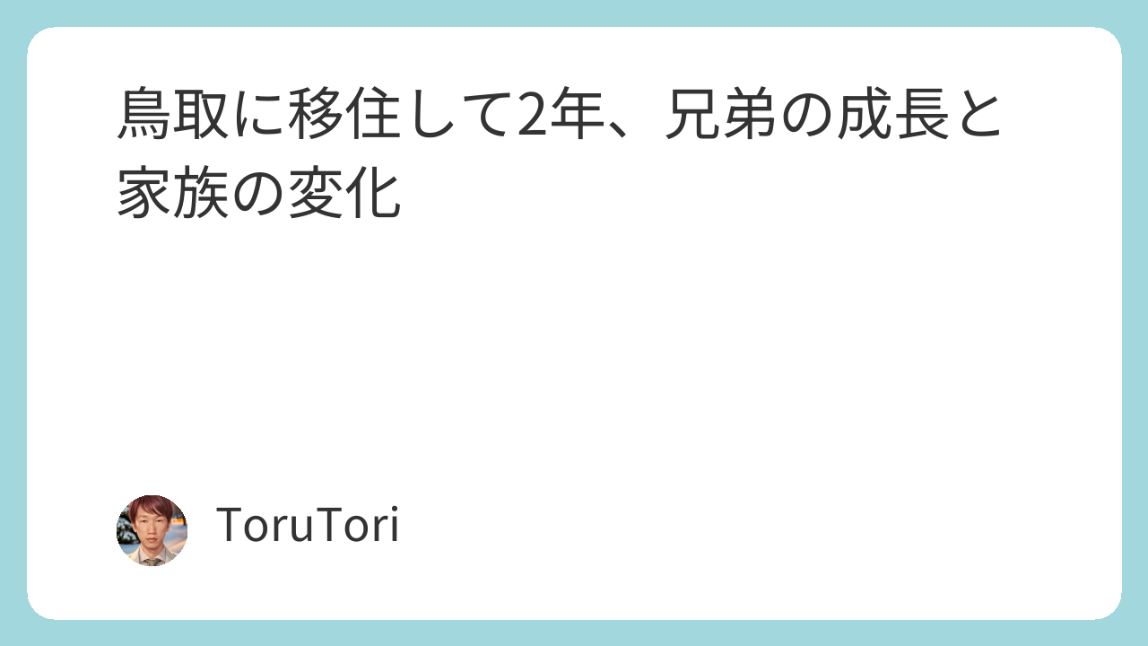 鳥取に移住して2年。兄弟それぞれが、自然とのふれあいを通じて大きく成長しました。そして、私たち家族も「一緒に成長している」と実感する毎日。移住という選択は簡単なことではありませんでしたが、今はこの環境に感謝しながら、これからの変化も楽しみに過ごしています。